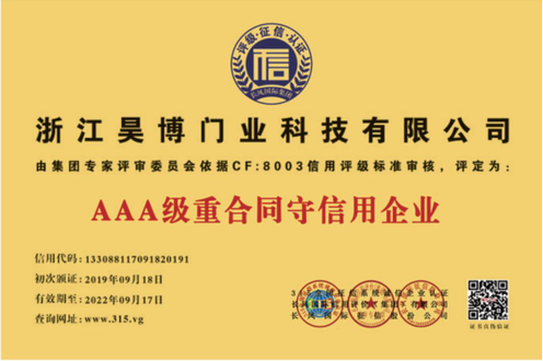 公司一直以來嚴(yán)格執(zhí)行ISO9001質(zhì)量體系和ISO14001環(huán)境管理體系標(biāo)準(zhǔn),建立了完備的科研、開發(fā)、生產(chǎn)、銷售服務(wù)體系。公司是浙江省門業(yè)協(xié)會(huì)會(huì)員單位,江山門業(yè)協(xié)會(huì)理事單位,中國(guó)木材與木制品流通協(xié)會(huì)會(huì)員單位,江山市消防協(xié)會(huì)副會(huì)長(zhǎng)單位。